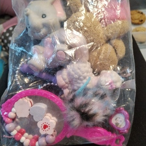 Jäätelöpaketti, jossa 4 sormusta pikku tytölle.