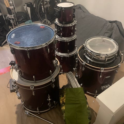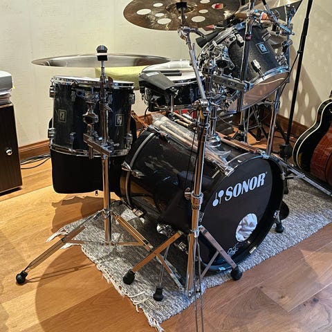 Tämä Saksassa valmistettu setti on peräisin 90-luvulta ja on loistava esimerkki Sonorin huippulaadusta. Runkojen materiaalina on 9-kerroksinen vaahtera, joka tuottaa lämpimän ja erottelevan soundin. Tämä setti sopii niin keikoille kuin studioon.