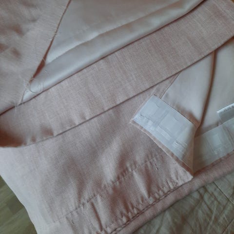 Siitä ylimmääräiseksi jäänyt rullattava vaalean värinen pimennysverho. Kiinnitykseen tarvittavat härpäkkeet on mukana.