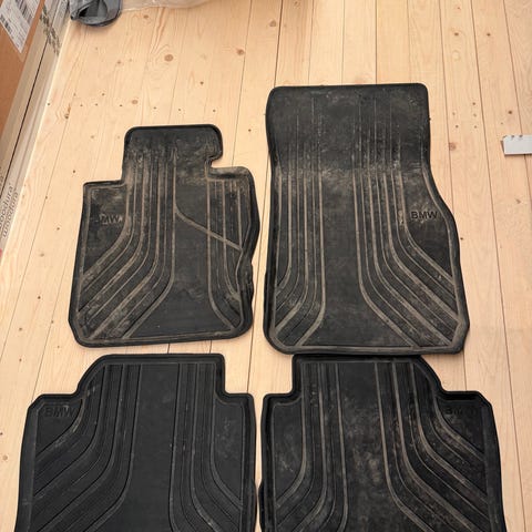 Erittäin hyväkuntoiset BMW alkuperäiset all-weather kumimatot F31 farmariin. Sopinee myös muihin F3x autoihin. Beiget/harmaat koriste reunukset.