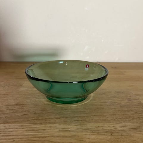Iittalan Verna-sarjan salaattikulho. Suunnittelija Kerttu Nurminen. Kulhon korkeus 10 cm, halkaisija 18,5 cm.