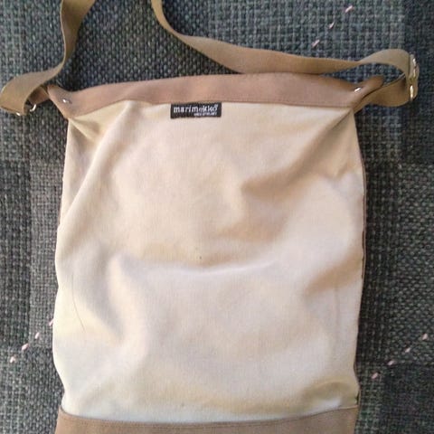 Marimekko hyväkuntoinen, vähän käytetty kankainen kanvaslaukku, tummanharmaa.