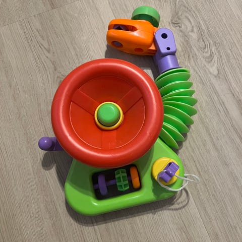 Emma leluratti sopii kaikkiin turvakaarella varustettuihin vaunuihin tai rattaisiin.Rattia avainta ja kaasuvipua voi käännellä. Kuuluu myös moottori ääniä sekä musiikkisäveliä. Kiinnitys tarranauhan avulla . Sisällä 2kpl AAA paristoja . Toimivat. Infinifuu aktiivisuuslelu autonavain . Auton avaimessa 3 painiketta joissa valo ja ääni toiminto. Auton avain tulee esille painamalla vihreää nappia. Sisällä toimivat patterit. Yhteishinta.