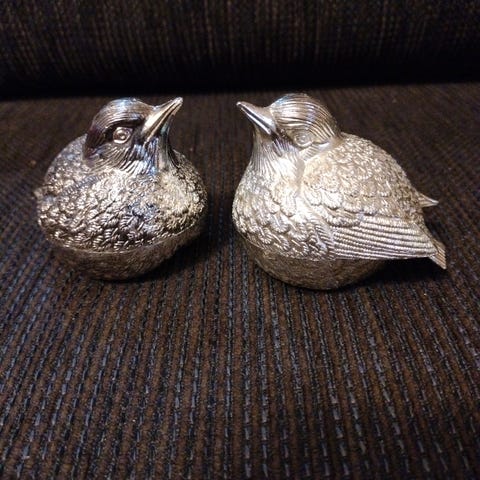 Kaunis, hopeanvärinen lintupari 1950–1970-luvulta.