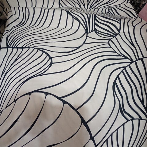 Harmaa kudottu kangas, jossa on teksturoitu hohdokas pinta ja kuvioitu rakenne. Kangas soveltuu erilaisiin sisustus- ja ompeluprojekteihin. Materiaali on kestävä ja tarjoaa mielenkiintoisen visuaalisen ilmeen. Leveys 290 cm ja korkeus 240cm eli iso tuplaleveä kangas. Edullisesti. Ostin aikoinaan tämän sisustus projektiin 45e metri hinnalla.eli maksoin itse 135e. eli myyn puoleen hintaan .Voin postittaa