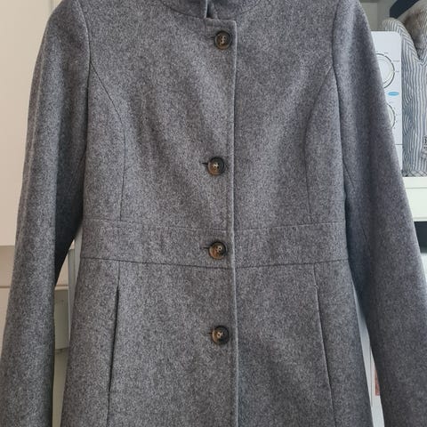 Kaunis Benettonin villakangastakki. Nepparikiinnitys, kevyesti topattu tikattu vuori, 60% villaa. Moitteena reikä toisen taskun vuorikankaassa sekä värjäymää vuoressa. Koko Italian 38 eli n. 34-36 EU-kokoluokassa. Kainalo-kainalomitta 47 cm ja olka-helma 80 cm. Koiratalous. Mmm.