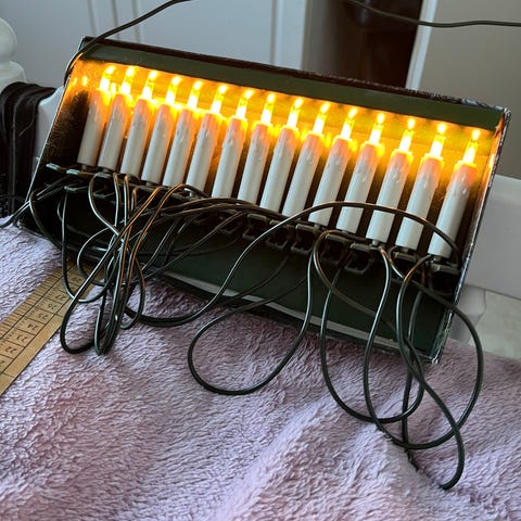 Led-valosarja joka käy myös ulkokäyttöön IP44. Lämmin valosävy. Kokonaispituus n. 9m yhtenäinen johtolenkki, 30 kynttilää, 10cm korkeat, lamppuväli n. 65cm . Napakat kiinnitysklipsit. Kuin uusi, ei käytetty, paketti vain mennyt rikki.