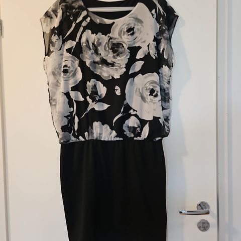 Myydään Janina F malliston musta mekko, yläosassa sifonkia, musta-lila kukallinen kuviointi Vain nouto ja maksu käteisellä.