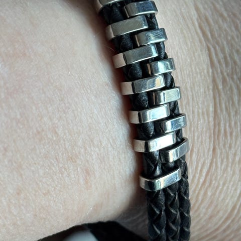 Zara Nahka Kullattu rannekoru, valmistettu nahasta ja kullatusta materiaalista. Rannekoru on unisex-malli ja siinä on valkoinen väri sekä neliönmuotoisia koristeellisia niittejä. Sopii sekä miehille että naisille.
