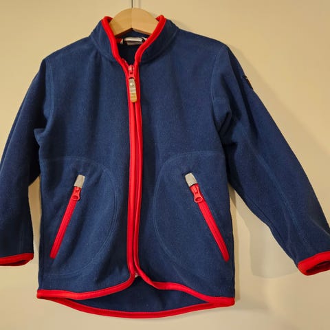 Karhu fleecetakki, koko 104, mielestäni reilu koko. Ei tahroja ja on ehjä. Enemmän ollut käytössä kerros pukeutumisessa kevyttoppatakin alla.