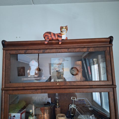 Naarmuja ja kolhuja. Pienemmän kaapin jalka on rikki.