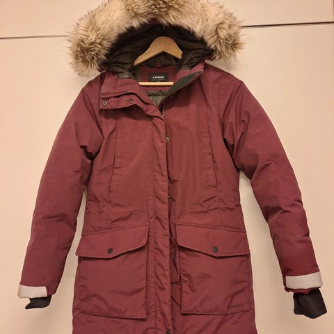 Hyväkuntoinen talvitakki. Hihassa pieni reikä, saa hyvin korjattua. Jäänyt ilmeisesti hiha joskus johonkin kiinni ja vähän revennyt siitä