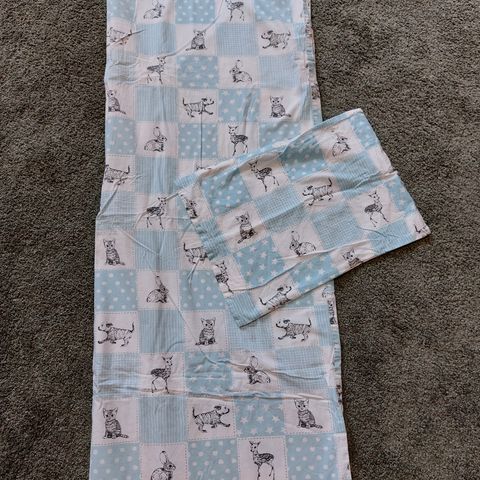 Pöllökuvioinen pussilakana vauvapeittoon + tyynyliina. Siisti käytetty.