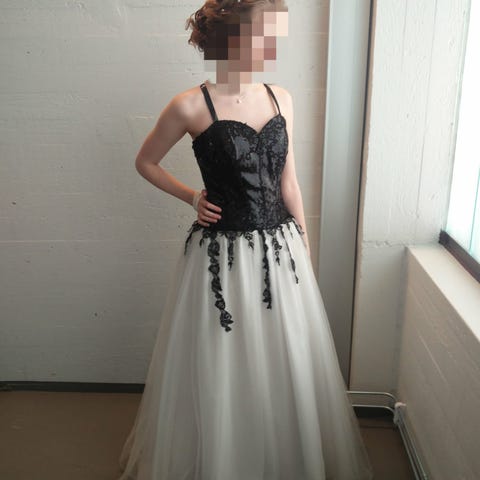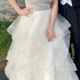 Kaunis shampanjan värinen pitkä kaason mekko. Ostettu JJ's Houselta koossa 36, mutta pienennetty ompelijalla hieman vyötäröltä ja rinnuksilta, vastaa siis ehkä enemmän kokoa 34.
