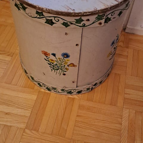 Perinteinen puinen tynnyri ja pyöreä puinen astia, molemmat valmistettu yhdestäpuusta. Kirnu on korkea ja kapea, astia on matala ja leveä. Sopivat esimerkiksi säilytykseen tai koristekäyttöön. Yht.30€.Nouto