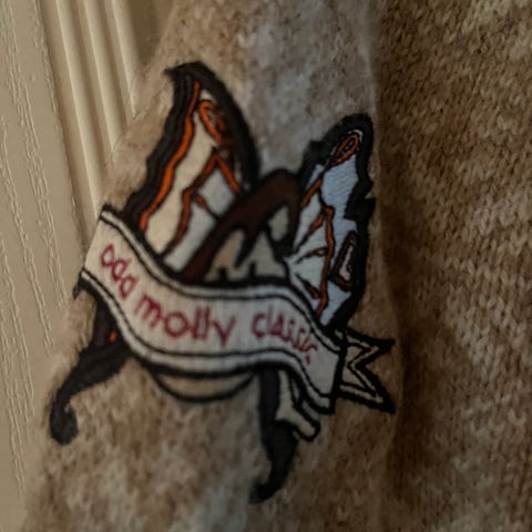 Paksu neuletakki nahkaisella etuosalla. Voi käyttää hyvin syksyllä takkina ja talvella toimistojakkuna. Ihana malli, saa aina kehuja ja kyselyjä kun on käytössä. Koko 1, vastaa s-kokoa. Vähän käytetty, siisti kunto.