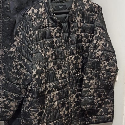 Ihana resereilla oleva valkoinen tikkitakki mustalla resorit ja vetoketjut