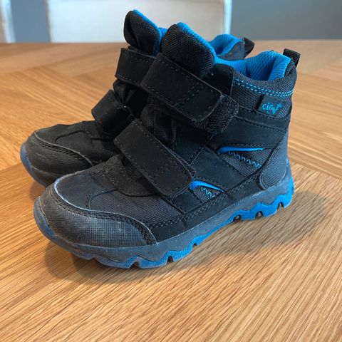 Kuvan paljon käytetyt mutta laadukkaat ja edelleen käyttökelpoiset välikausi/talvikengät koossa 24-25. Beigen väriset, sisällä lämmin vuori.