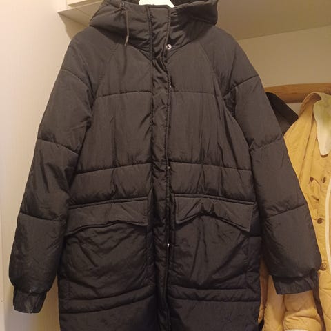 Zara toppatakki koko M, väriltään neon keltainen. Takki on valmistettu materiaalista, joka tarjoaa lämpöä ja suojaa ulkoiluun.