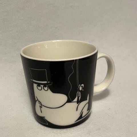 Arabia muumipappa kulho, musta ja valkoinen väri, valmistettu posliinista. Soveltuu keittiövälineeksi ja tarjoiluun.