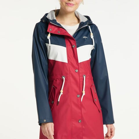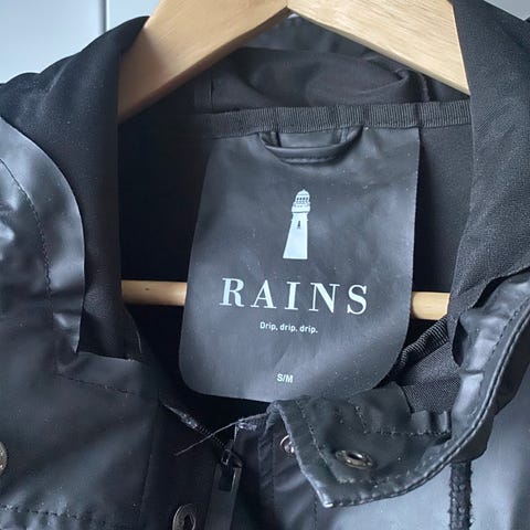 Toppatakin saa kiinnitettyä sadetakin sisälle, joten tällä tarkenee säällä kuin säällä. Hyväkuntoinen.