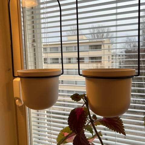 Kaksiosainen yrteille sopiva astia jossa sivussa vesiastia. Lev. 23 cm, syv. 10 cm ja kork. 9 cm. Nouto. Käteinen.