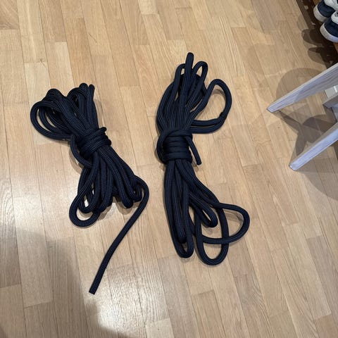 Erittäin paksu puna-musta köysi jossa silmukka.