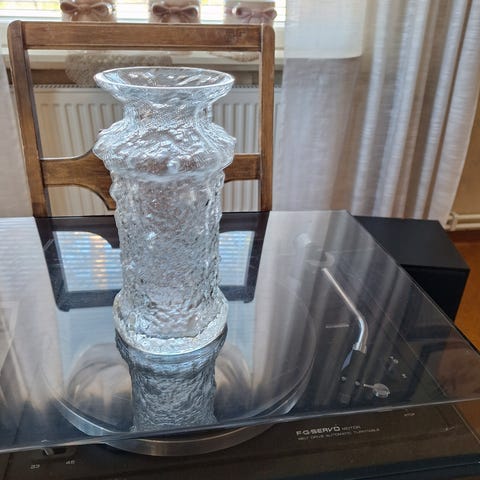Iittalan maljakko, Kerttu Nurminen Nuutajärvi. Korkeus 13cm. Vitriinissä pidetty. Ehjä ja siisti. Rantavitikalla. En postita.