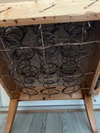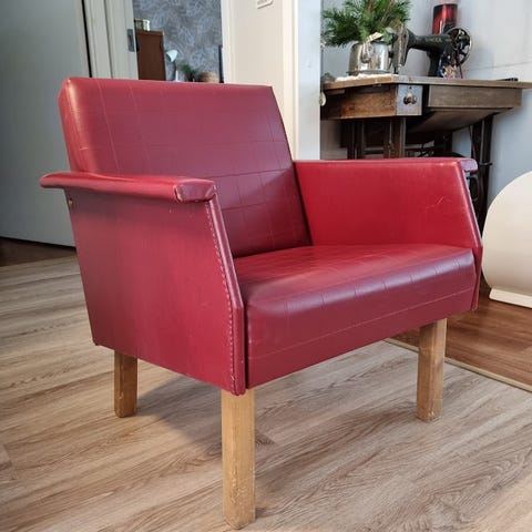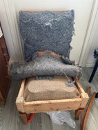 Entisöinti aloitettu, tästä on hyvä jatkaa. Vanha K-tuoli 50 luvulta. Jäi kesken, hinta 20e. Likaisin työ tehty kun vanhat päälliset purettu.