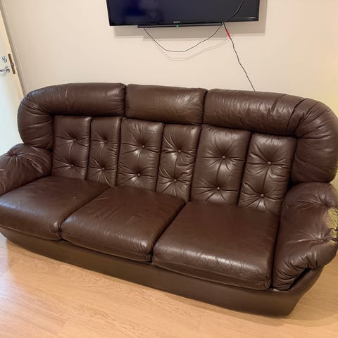 Erik Wörtzin 1960-luvulla IKEA:lle suunnittelema ajaton tiikkirunkoinen nahkasohva.