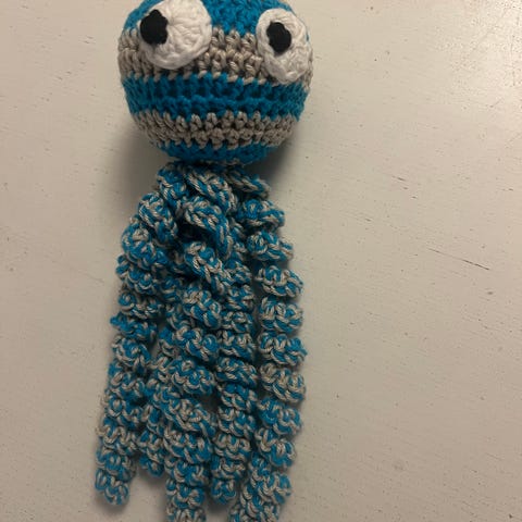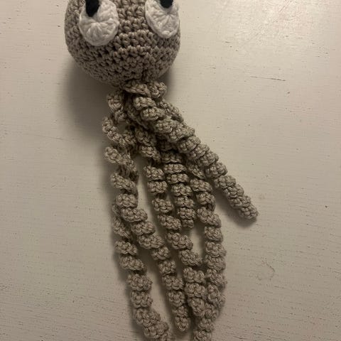 🩶 Käsin virkattu mustekala-/ turvalonkero pehmolelu