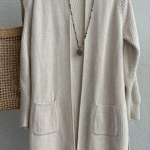 Käyttämätön tummansininen Repeat neuletakki. Reunassa hapsut, rento malli, joka kiinnitetään kahdella napilla yläreunasta. Postitus 9eur