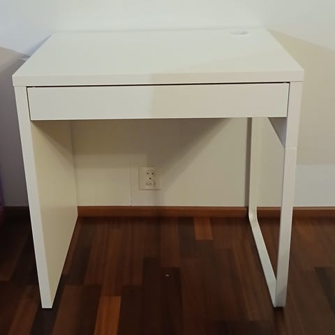 Mydään Ikean Malm-sarjan työpöytä valkoisena. Erittäin siistikuntoinen, mutta pöytälevyssä yksi kolhu jonka saa jäämään kirjoitusalustan, pöytäliinan, tabletin tmv. alle. Johdoille pöydän alla hyvä säilytyshylly ja tilavat laatikko ja kaappi oikealla.