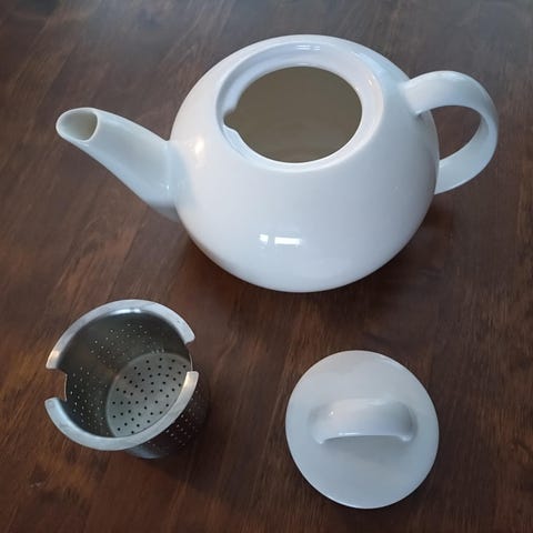 Arabia 24h Teekannu. Sisältää kannen ja irrotettavan metallisen suodattimen. Ehjä ja aika vähän käytetty vuosien varrella.
