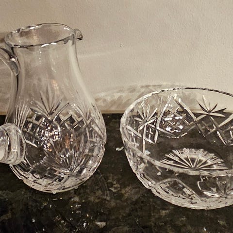 Kristallilasiset sokerikko ja kermakko