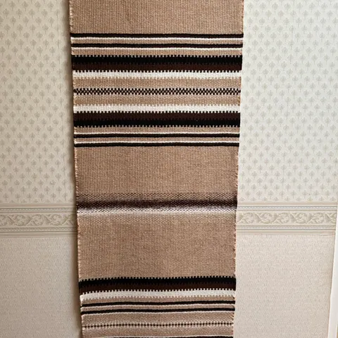 Kauniin punainen raanu, jossa mustavalkoiset raidat ja ohuet viivat. Raanu on valmistettu kestävästä materiaalista, sopii monenlaisiin sisustustyyleihin ja tiloihin. Tankokuja ja sisällä puinen tanko ripustukseen. Ei ollut eläintaloudessa. Joko haettuna (Helsinki) tai postilla ostajan piikkiin.