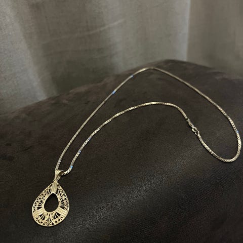 Valmistettu todennäköisesti 925-hopeasta. Riipuksessa risti ja tiikerinsilmäkivi.