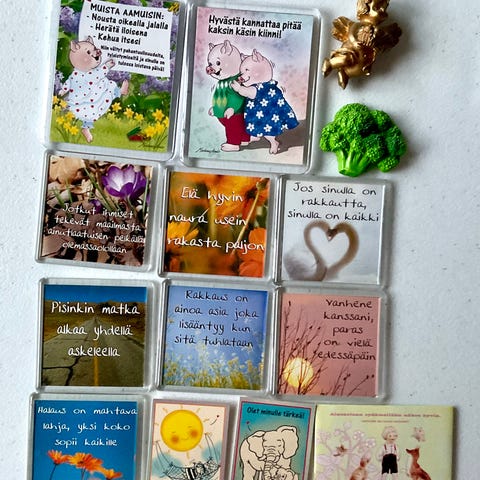 Myynnissä kuvassa olevat kuusi jääkaappimagneettia,puhtaat ja ehjät.