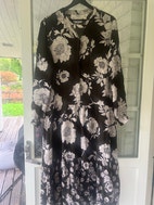 Ihana syksyinen viskoosimekko. On tyylikäs päällä ja laskeutuu kauniisti. Pohjaväri on tummanvihreä. Nouto tai postitus.