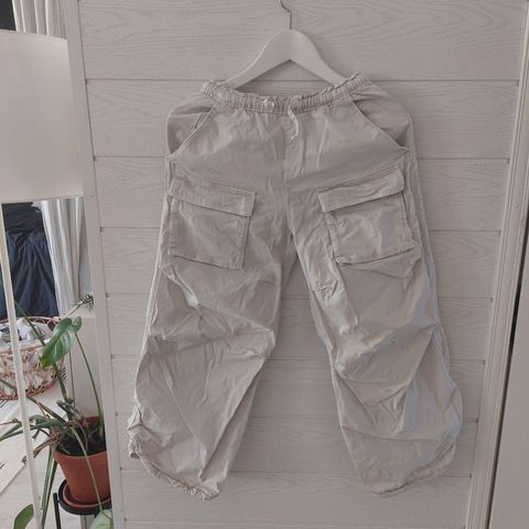Uudenveroiset puuvillaiset cargohousut. Vyötäröllä ja lahkeissa kuminauha, edessä ja reisissä taskut. Savuton, homeeton ja eläimetön koti. Nouto (tai postitus 6,90€, ei toridiiliä).