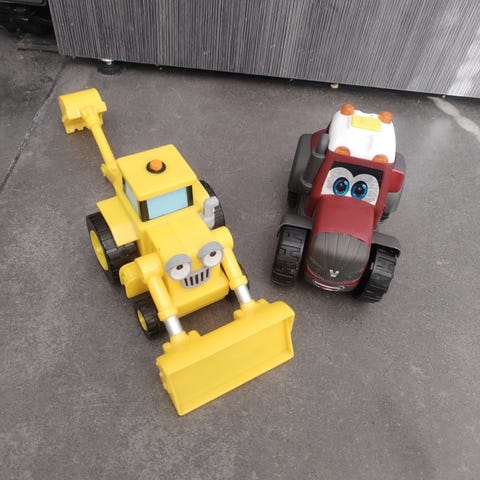 Poliisiauto, ambulanssi (vilkku puuttuu katolta) ja kuplavolkkari.