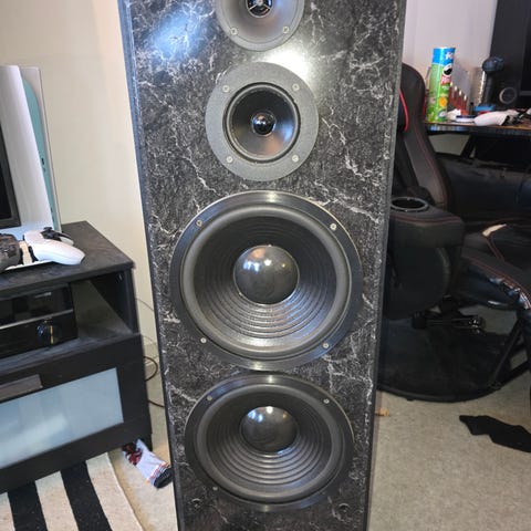 Hyväkuntoinen ja musta vahvistin kotiteatteriin.