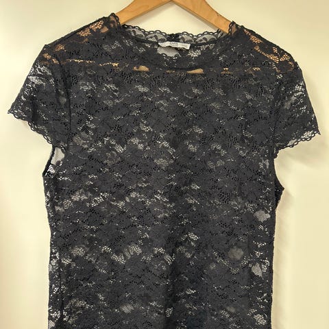 Musta t-paita pitsi helmalla.