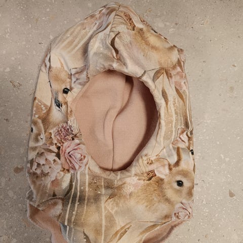 Yhden talven köytössä ollut merinovillainen kypärämyssy 41cm 1-4kk ikäiselle vauvalle. Siisti ja ehjä, hieman helma hapsuuntunut, mutta ei haittaa käyttöä. Pesty hajusteetomasti.