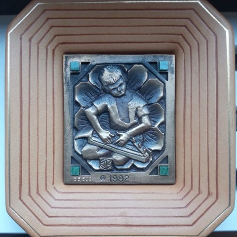Ehjä ja yleisilmeeltään siisti hieno harvinainen vanha / retro (70- / 80-luvulta) reliefi / taulu, äiti ja lapsi halaavat, design Hellä Juvonen, Kalevala Koru. Reliefin koko n. 15 x 23,5 cm. Materiaali hopea (metalli) ja puu. Hieman ajanpatinaa lähinnä kehysten reunoissa. Hinta 60 e. Voin myös postittaa, jolloin postimaksu on 8,90 e.