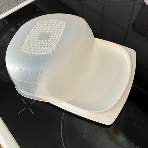 Itselleni ylimääräiseksi jäänyt Tupperwaren juustokupu.