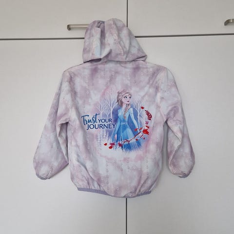 Selän heijastinprintti jo aika kulunut ja muutenkin jo vähän nuhruisessa kunnossa, mutta lämmin löytö Frozen-faneille. :)