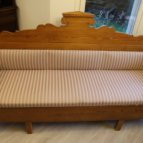 Tuotetiedot: Todella kaunis täyspuinen antiikkisohva. Sohvan istuin on pesty tekstiilipesurilla. Halutessaan pehmusteen kankaan voi vaihtaa oman tyylin mukaan uuteen kankaaseen.