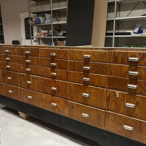 Puusepän valmistama teak-hyllyn ylijäämästä.