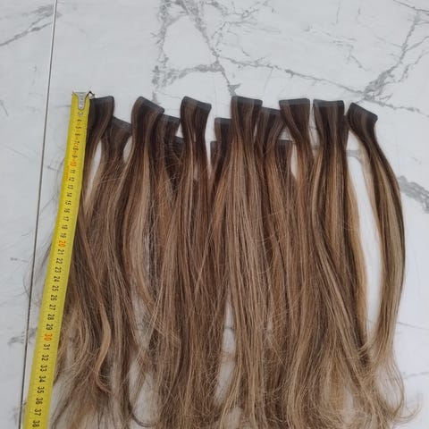 Myyn pastelin 35 cm teippipidennyksiä 13 vastaparia . Lyhennetty 60cm hiuksista.